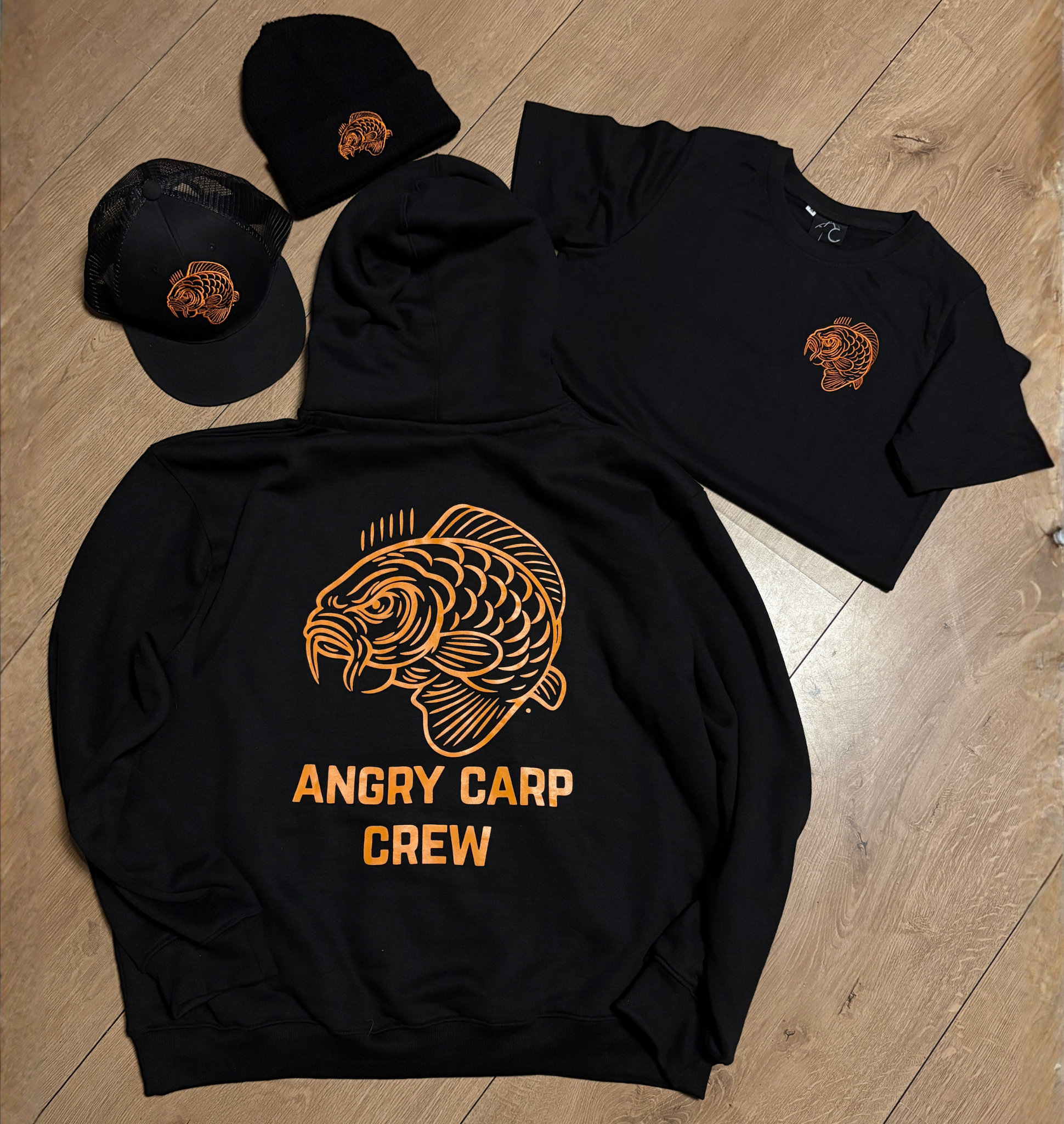 De complete Angry Carp lifestyle set — warme sessies, representatie én streetwear in één outfit.