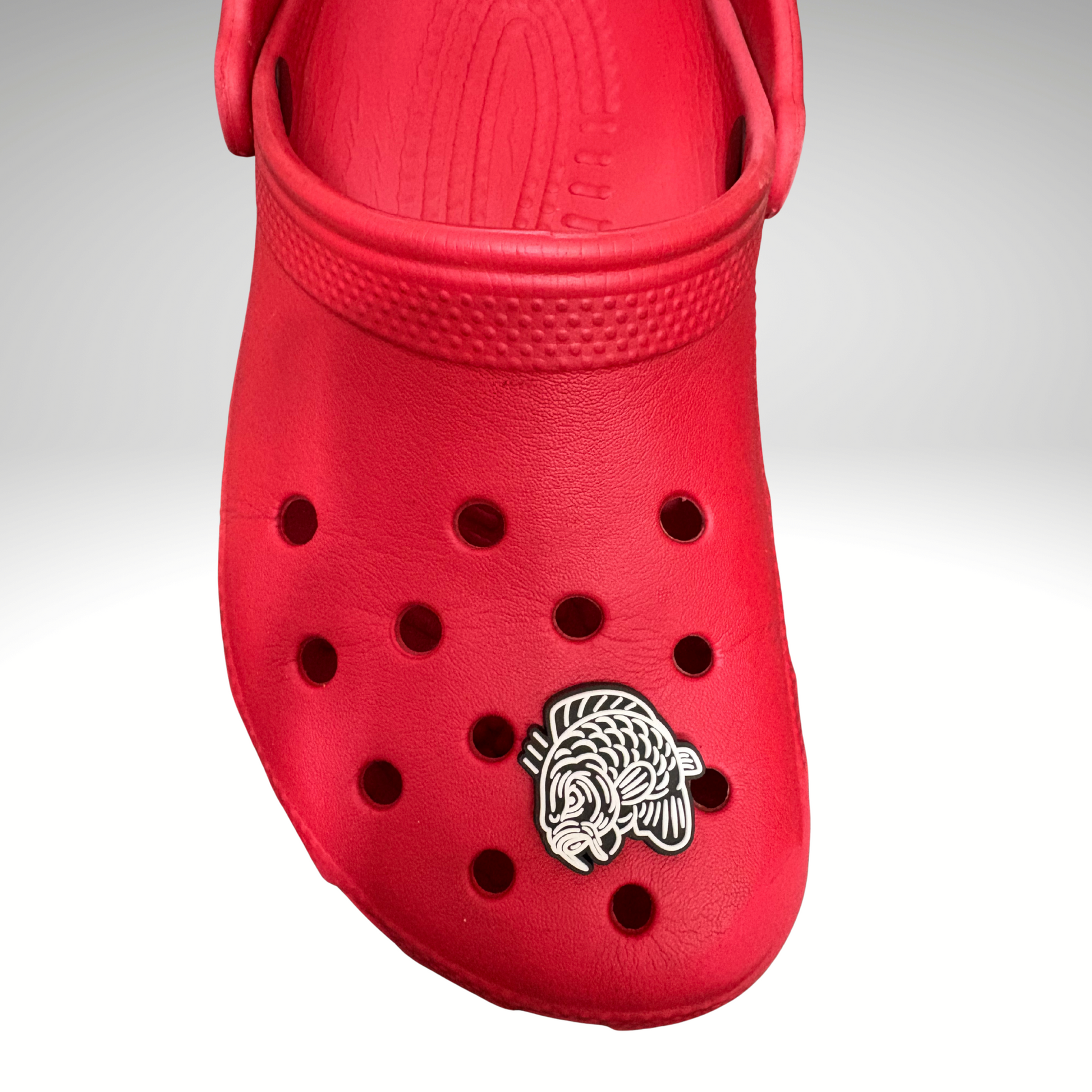 Of je nu in de tuin staat, op de steiger zit of door de supermarkt loopt – met deze Angry Carp Croc Charm stap je altijd in stijl.